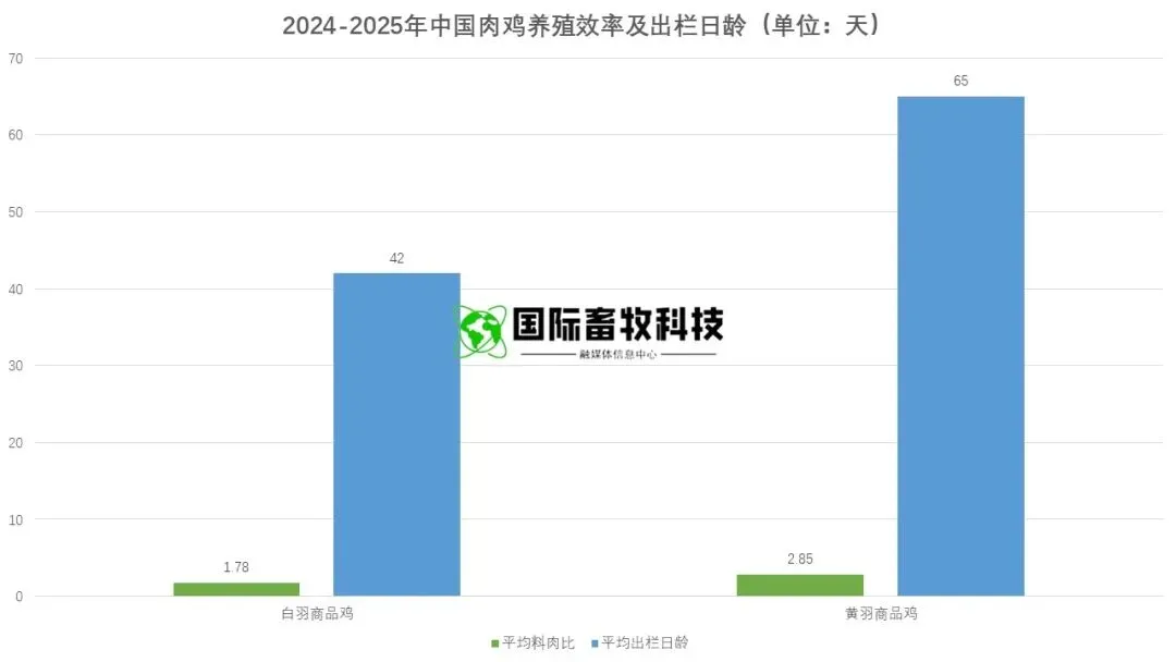 黄羽商品鸡养殖效率同步提升,快大型黄羽鸡平均料肉比2.85:1,较2024年下降0.05个百分点,平均出栏日龄65天,较2024年缩短2天。