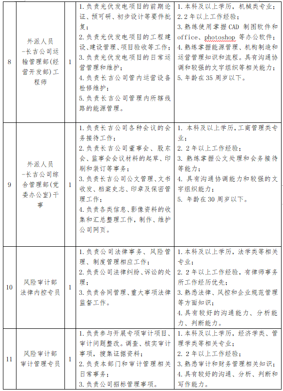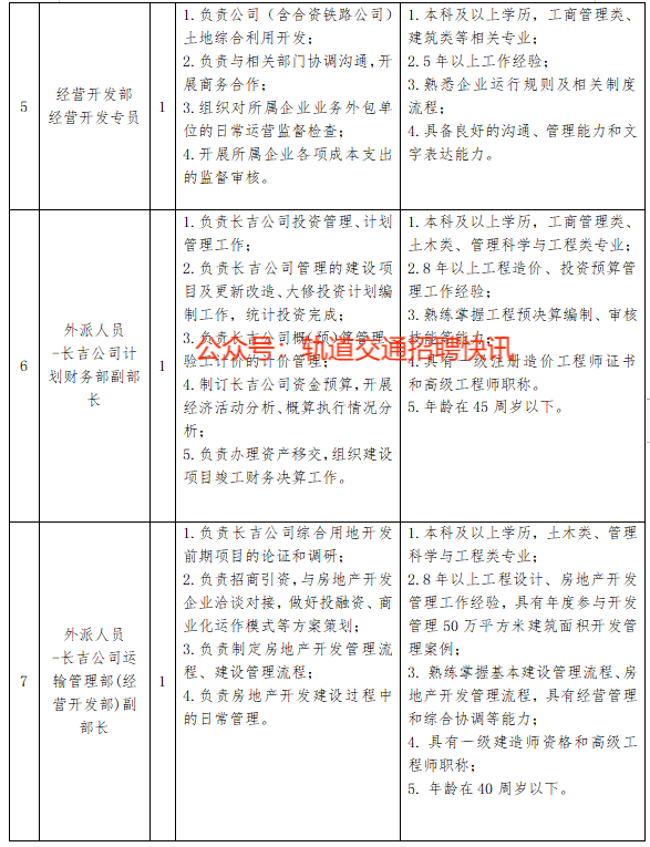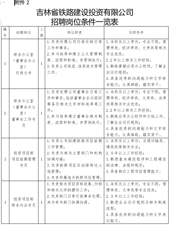 2.吉林省铁路建设投资有限公司招聘岗位条件一览表