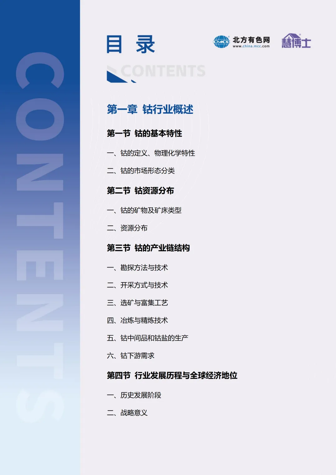在此背景下,我们编撰《钴产业报告2026》,旨在系统梳理全球及中国钴产业的发展现状、市场动态、技术趋势与政策环境,深入分析行业面临的机遇与挑战,并对未来发展方向作出前瞻性研判。报告共分八章,涵盖从资源分布、产业链结构、市场供需、政策标准,到技术创新、竞争格局、风险预警及战略建议等多个维度,力求为政府部门、行业企业、研究机构及投资者提供全面、深入、可靠的决策参考。