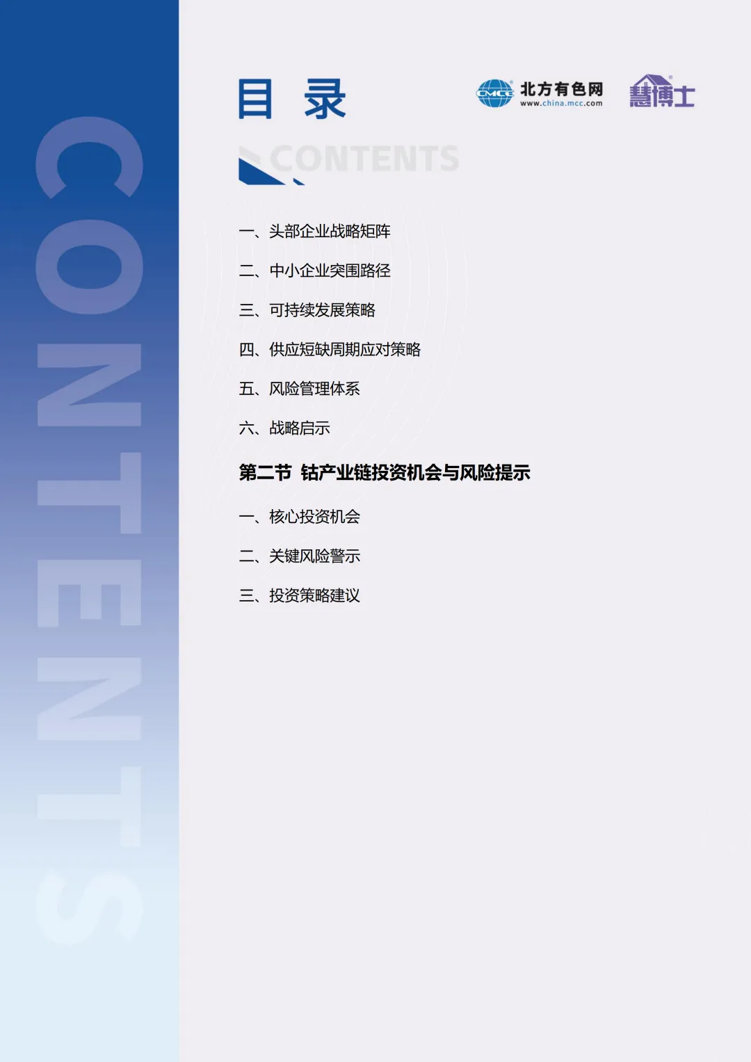 慧博士产业研究院依托北方有色网,是专注于有色金属产业的领军智库。提供行业研究、战略咨询、市场数据及资源对接服务,助力企业把握机遇与转型升级。