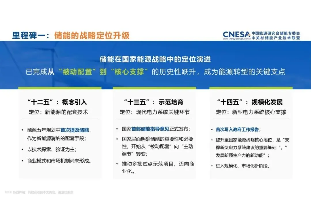 产业结构性变化尤为显著:应用场景从用户侧(占比降至8%)全面转向独立储能(占比58%);区域布局从负荷端向风光资源富集区转移,内蒙古、新疆凭借年均250%以上的复合增长率领跑全国;项目规模从MW级迈向GW级,2025年新增投运规模达66.43GW/189.48GWh,平均储能时长提升至2.85小时。政策层面,储能战略定位已从"被动配置"升级为新型电力系统"核心支撑",参与电力市场的交易品种从单一辅助服务向"中长期+现货+辅助服务+容量补偿"全品类进阶。报告预示着2026年储能产业将在商业模式成熟与技术成本下降的双重驱动下,进入以独立储能和长时储能为特征的高质量发展新阶段。