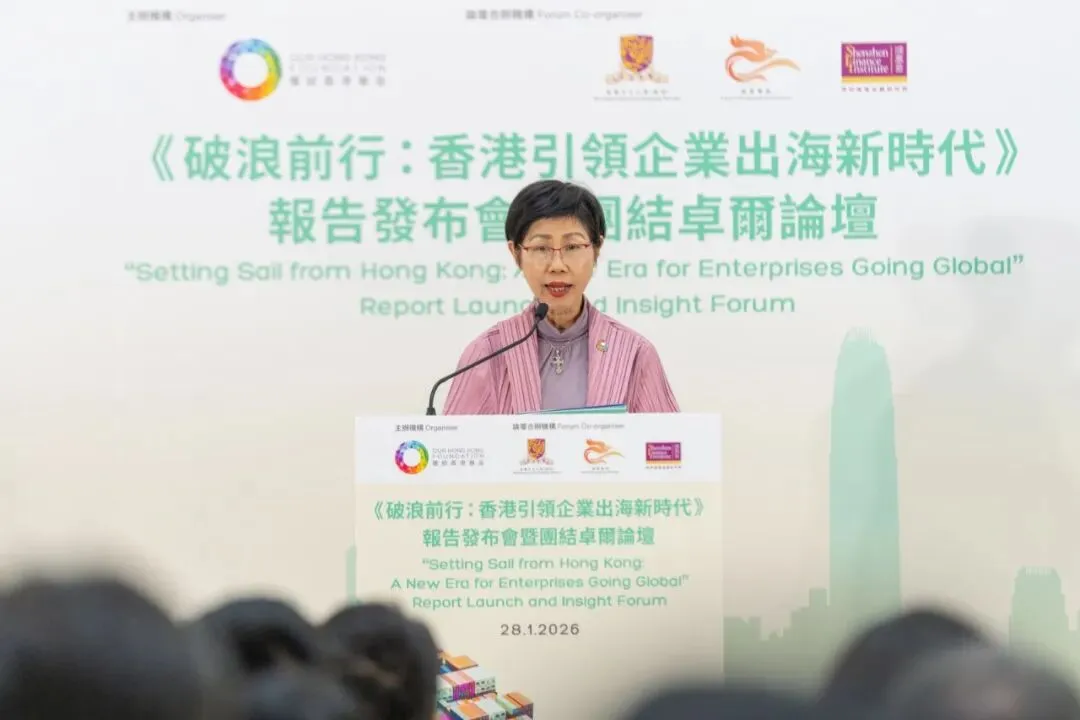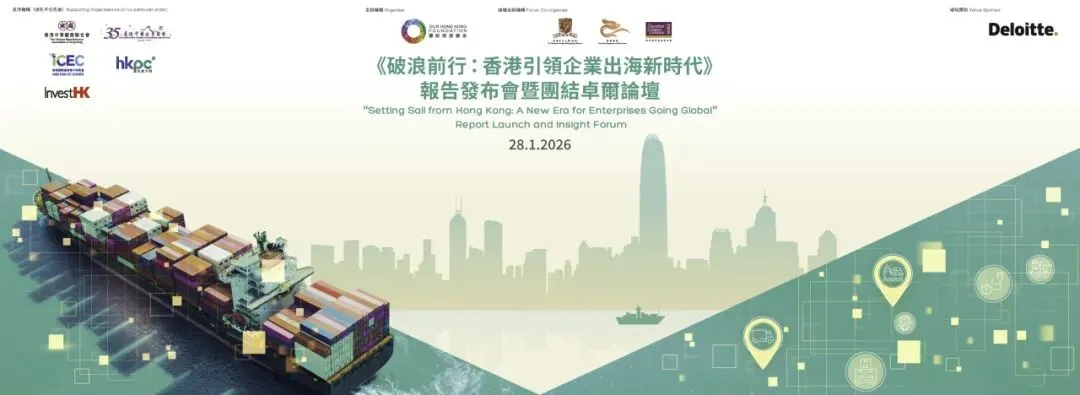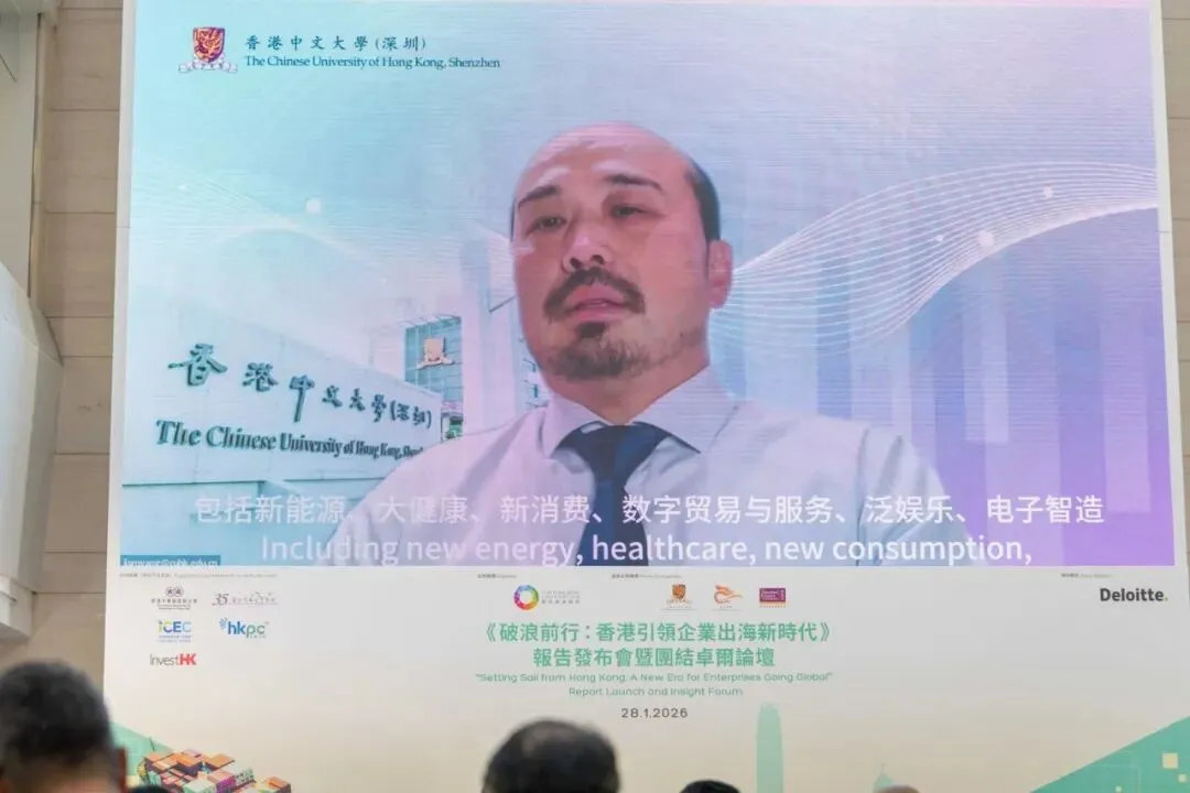 1月28日,香港中文大学(深圳)高等金融研究院与团结香港基金联合主办的《破浪前行:香港引领企业出海新时代》报告发布会暨团结卓尔论坛顺利举行。活动聚焦中国香港作为企业出海枢纽的核心价值,通过主题演讲、报告发布与圆桌对话,为中国企业出海路径提供专业洞见。