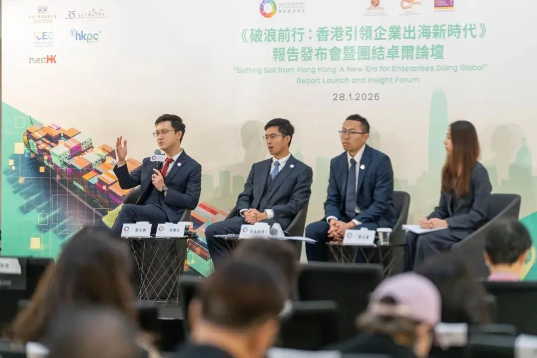 随后环节,团结香港基金发布了《破浪出海:香港如何引领企业出海新时代》研究报告,并围绕中国香港在金融、法律、科技等领域的配套优势,提出多项策略建议。