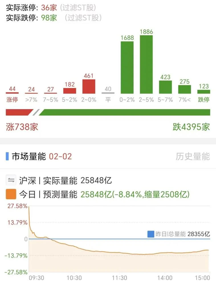 第二,资金面承压+节前避险情绪发酵。一方面,北向资金今日净卖出,场内主力资金从前期高位板块集中出逃,尤其是贵金属、有色板块,主力净撤离超80亿元,资金出逃导致板块失血、指数承压;另一方面,临近春节,投资者“持币过节”的心态升温,两市半日成交额缩量约2508亿元,市场承接力不足,缩量进一步放大了下跌幅度,形成“越跌越卖、越卖越跌”的恶性循环。