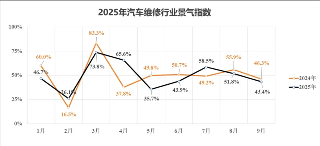 从驱动因素看,四季度景气指数波动主要由需求端季节性变化主导。国庆假期前后居民长途自驾出行显著增加,集中释放了车辆保养、轮胎更换和安全检查等维修需求,成为10月份景气回升的主要动力。随着进入冬季,低温天气增多、户外作业效率下降,以及年末居民和企业消费趋于谨慎,维修需求阶段性收缩,上述因素在11—12月被进一步放大,导致景气指数快速回落。