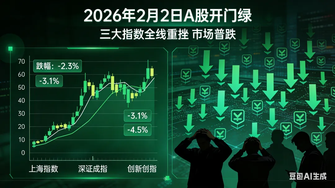 2026 年 2 月 2 日,A 股市场迎来 2 月首个交易日,却遭遇 "开门绿"。三大指数全线重挫,市场呈现普跌格局,投资者情绪低迷。