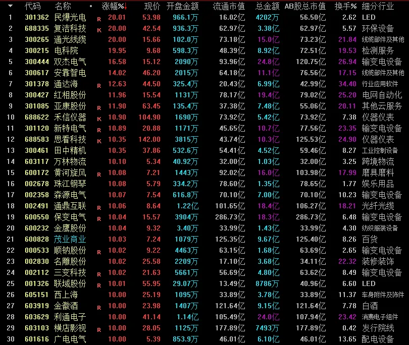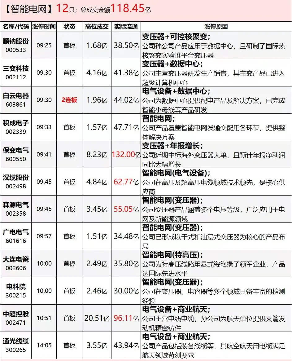 电网设备:板块逆势活跃,三变科技、保变电气、汉缆股份、白云电器等多股涨停。