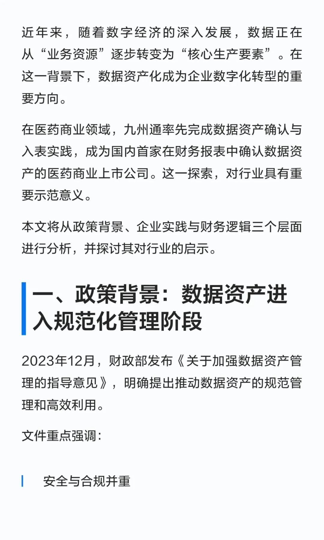 国内首家确认数据资产的医药商业企业:九州通的实践路径