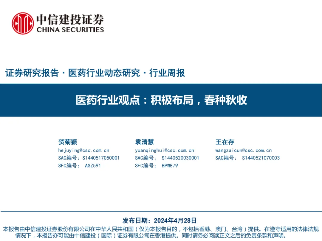 医药行业观点:积极布局,春种秋收