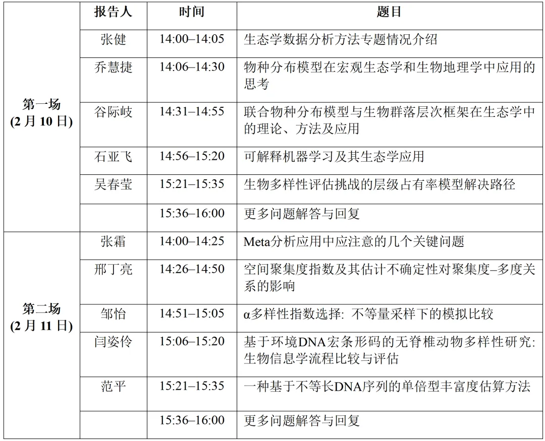 生态学研究正经历从格局描述向机制解析与量化验证的范式转变,数据分析方法和模型在其中发挥着重要作用。《生物多样性》策划出版了“生态学数据分析方法专题”,以期通过对生态学领域一些常用数据分析方法的介绍、梳理和总结,推动其更科学、合理的应用。为使广大读者能更好地了解本专题涵盖的各种方法,《生物多样性》特组织了本次线上报告会。报告会将分为两场,诚邀相关领域学者踊跃参与。