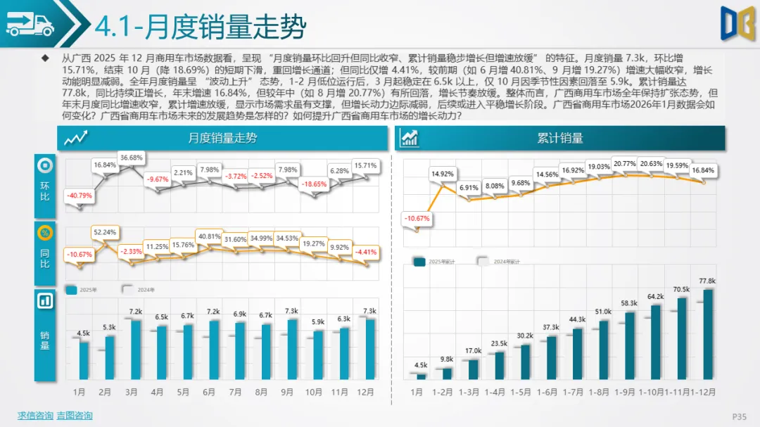广西商用车市场是12月唯一保持扩张的板块,但呈现 “总量增长、结构分化” 的特征: