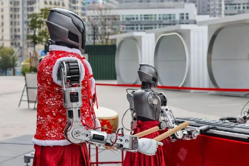 深圳:机器人乐队街头演出