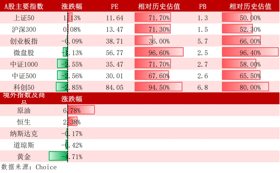 表1:市场指数上周表现及估值