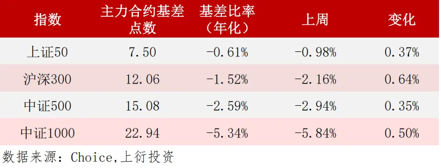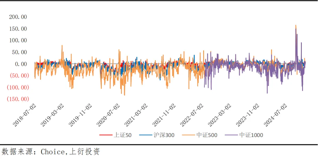 基差方面IH、IF、IC、IM(长期拟合基差)贴水率均收敛,为0.61%、1.52%、2.59%、5.34%。