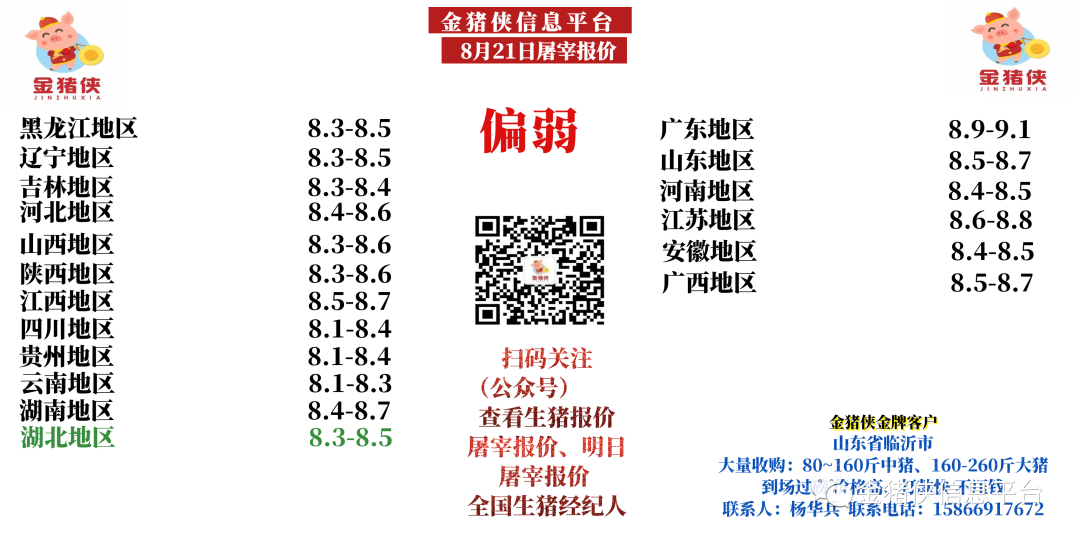 【金猪侠】8月21日屠宰企业收购价~【偏弱】