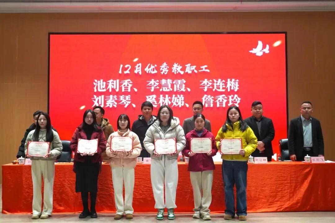 大会在庄严热烈的气氛中拉开帷幕。首先,刘欣主任宣读了《2025年12月份优秀教职工表彰决定》,对在过去一个月中表现突出的教职工予以表彰。随后,林挺校长为获奖者颁发荣誉证书,激励全体教职员工以先进为榜样,继续发扬爱岗敬业、奋发有为的精神。