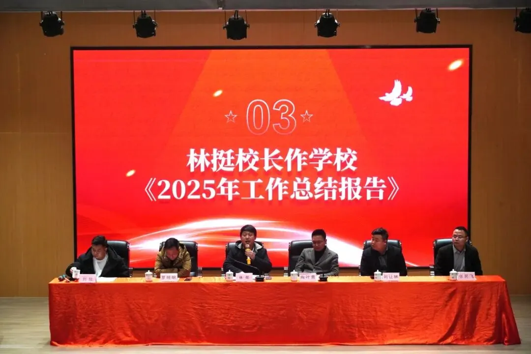 会上,林挺校长代表学校作了《2025年工作总结报告》。报告全面梳理了过去一年学校在党的建设、教育教学、管理服务、校园文化等方面取得的成绩,深刻分析了当前面临的机遇与挑战,并对2026年重点工作进行了系统部署。林校长强调,全体教职工要继续保持昂扬斗志,紧紧围绕立德树人根本任务,推动学校各项事业再上新台阶。