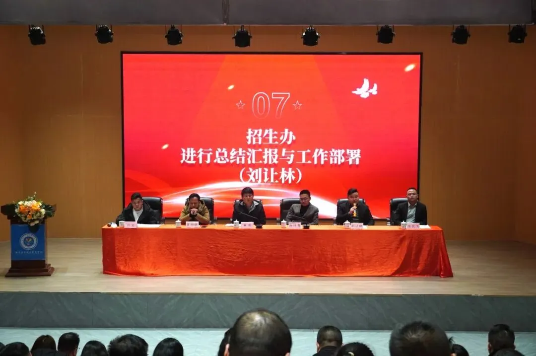 招生办刘让林对2025年度招生工作进行了全面梳理。他结合数据分析了今年招生的整体情况、生源结构及宣传效果,总结了在招生等方面的经验与不足。面对新形势,招生办将进一步创新宣传方式,吸引更多优质生源,为学校规模发展与质量提升打下基础。