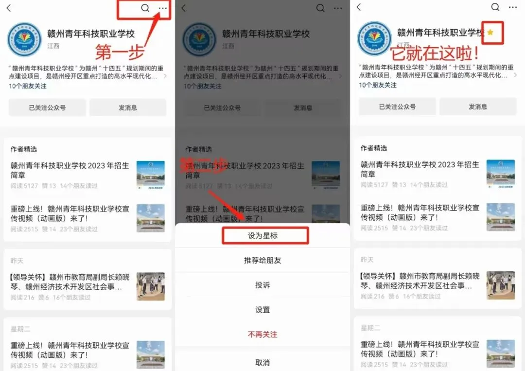 将公众号设为 “星标★”,可以第一时间收到公众号推文,关注学校最新新闻哦,赶快按照步骤关注起来吧!