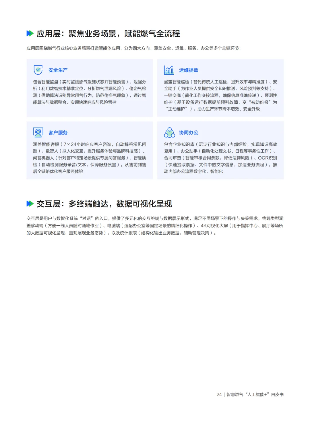 白皮书最具价值的部分,是将抽象的AI能力与具体的燃气业务场景深度融合,构建了"平台+场景"的落地范式。