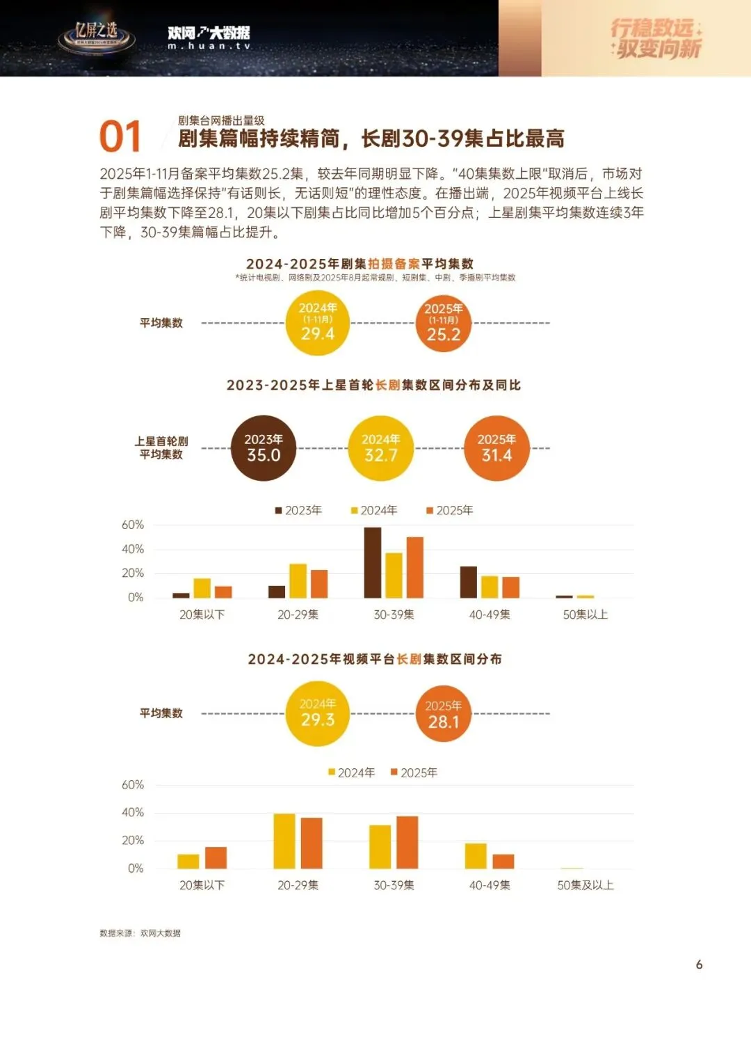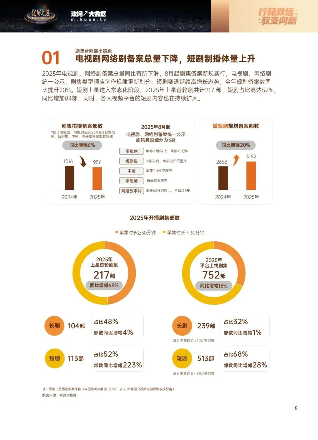 的核心特征。备案新规的实行进一步规范行业发展秩序,篇幅精简推动内容提质,收视大盘向好彰显市场活力,长短剧协同发展完善内容供给,题材创新拓宽受众圈层。长剧的精耕细作与短剧的快速崛起相辅相成,共同印证了剧集行业正稳步迈入多元化的全新阶段。