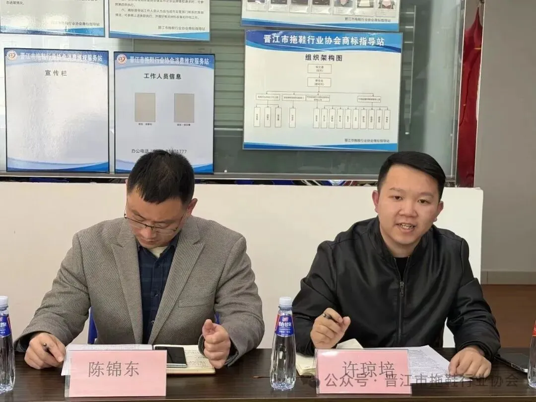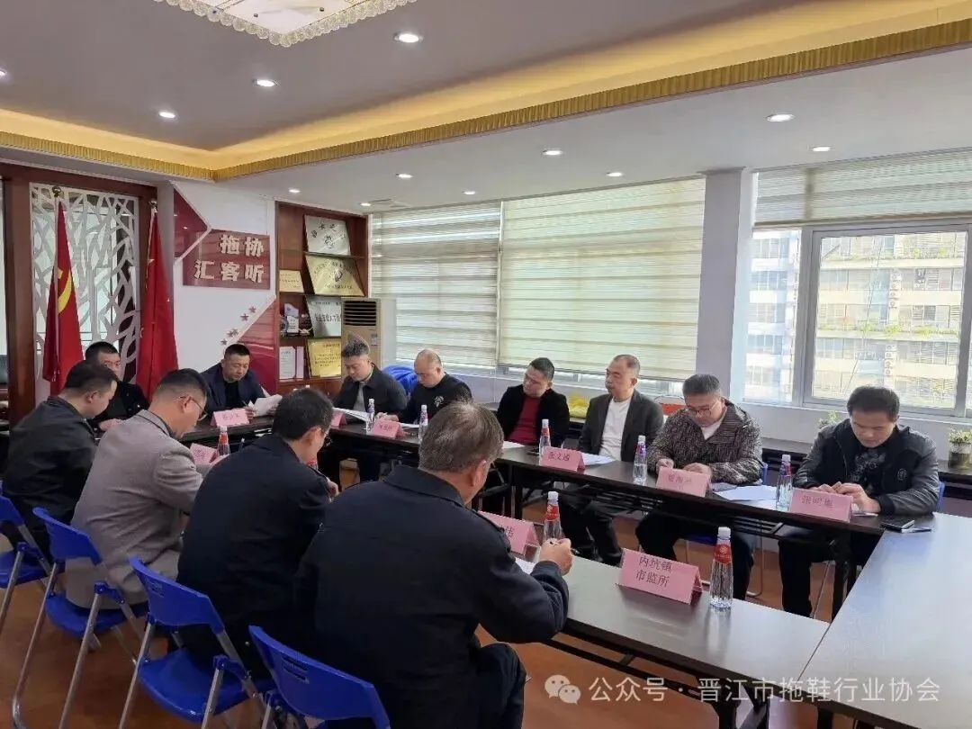 为推进拖鞋行业规范化发展,提升产品质量标准,1月12日下午,一场关于“EVA拖鞋抗收缩团体标准制定座谈会”在晋江市拖鞋行业协会会议室成功召开。晋江市质量计量检测所陈锦东、内坑镇市场监督管理所副所长黄志强、科员龙伟、厦门方圆许琼培、协会会长张文通、秘书长蔡全金、监事长曾海波、副会长以上部分拖鞋企业代表及其秘书处成员出席本次会议。