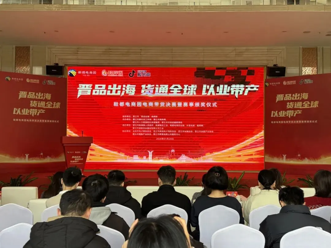 2026年1月20日,参加“晋品出海 货通全球 以业带产”鞋都电商园电商带货挑战赛颁奖活动。