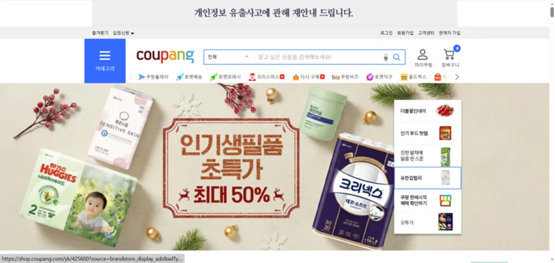 图1 图片为韩国Coupang官网主页,其功能类似于淘宝、亚马逊