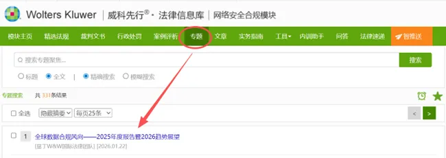 威科先行-网络安全合规模块-专题栏目