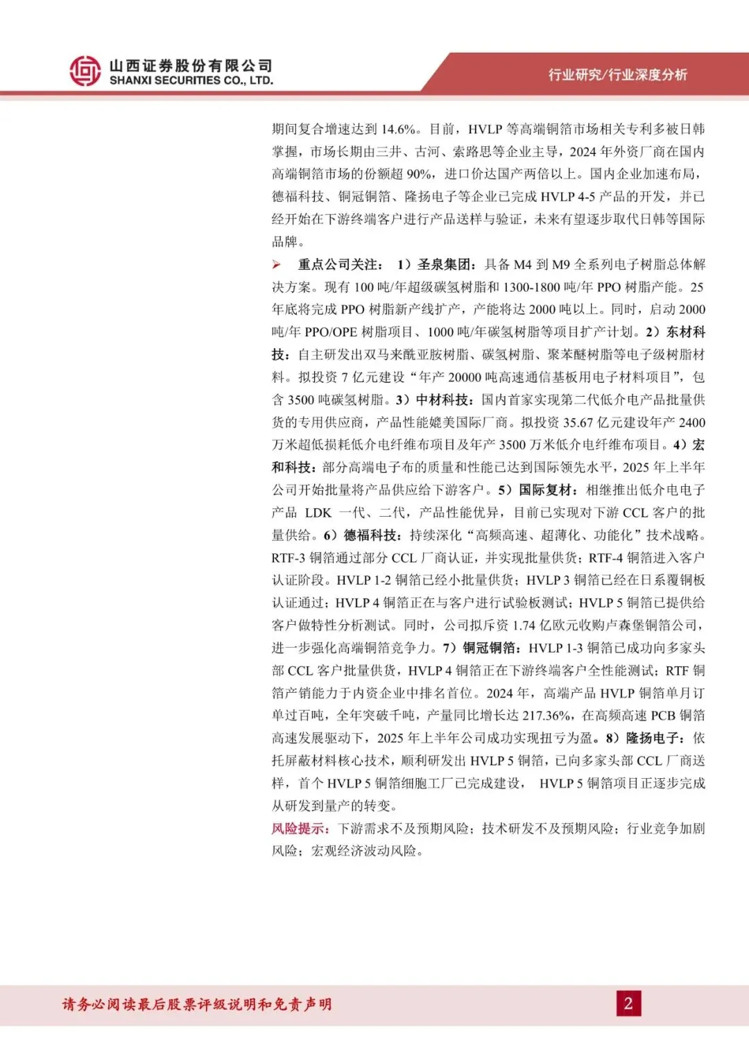 隆扬电子:首座HVLP5“细胞工厂”建成,已向中日头部CCL送样,预计2026年规模量产。