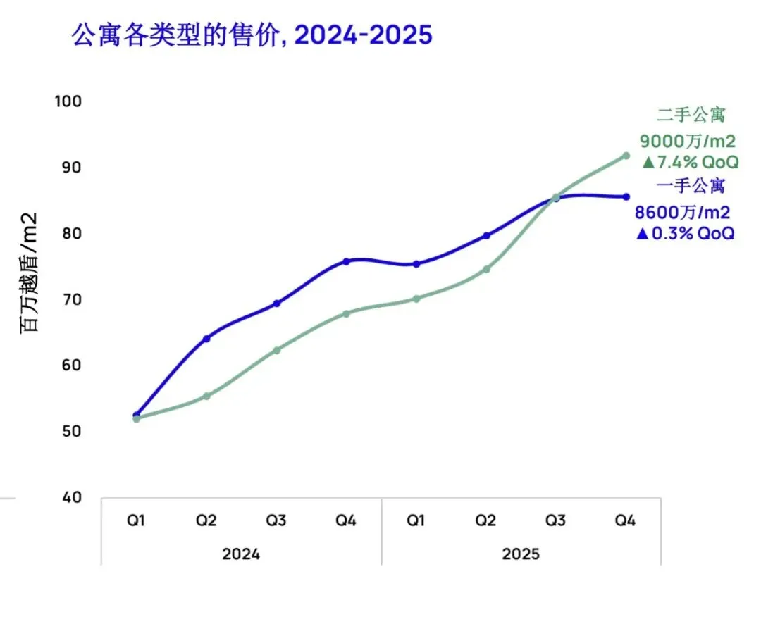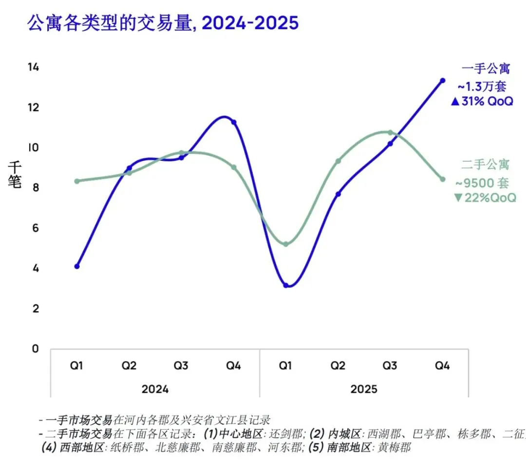 2025第四季度,二手公寓交易出现回调,而一手公寓持续强劲增长