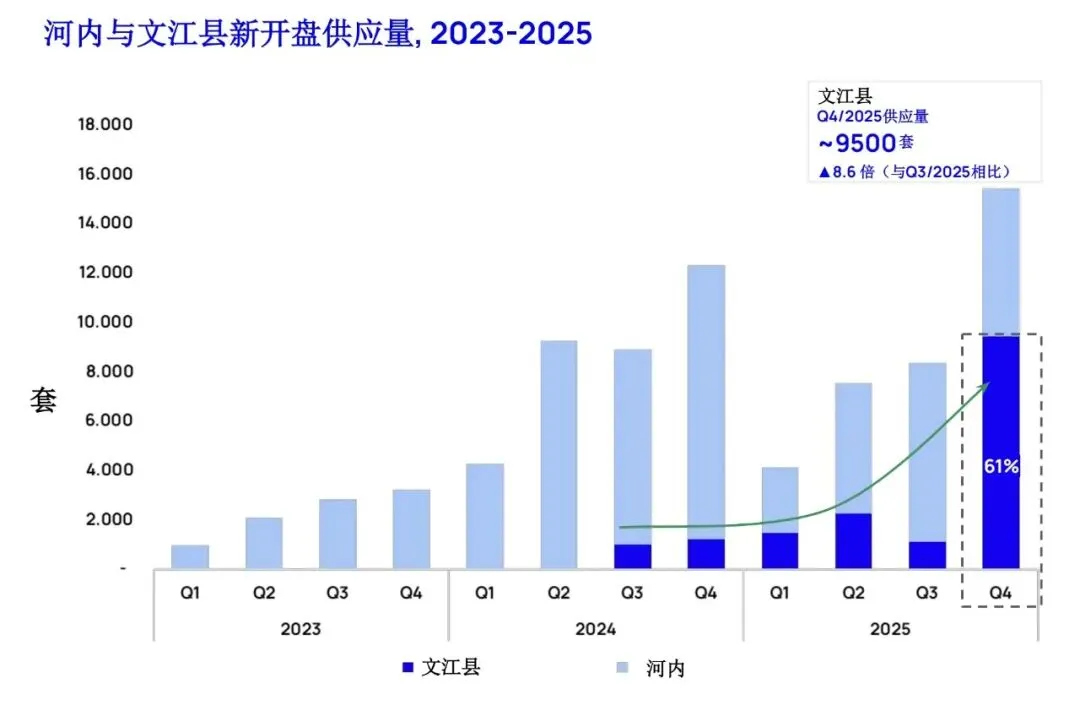 值得关注的是,文江县作为新增供应的核心驱动力,供应占比高达61%,主要得益于4个大型项目的持续开工与推售。此外,文江县还成为第四季度新增供应增长最大的地区,较2025年第三季度增长8.6倍。