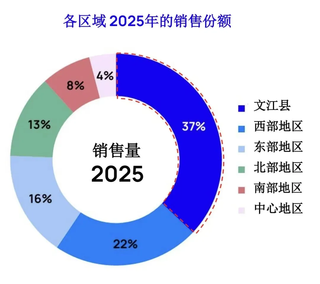 文江县不仅在新增供应方面位居首位(占比40%),同时也占据全市场最高的销售份额(37%)。其中,超过70%的项目在2025年第四季度的吸纳率已达到80%以上,进一步巩固其作为市场核心成交区域的地位。