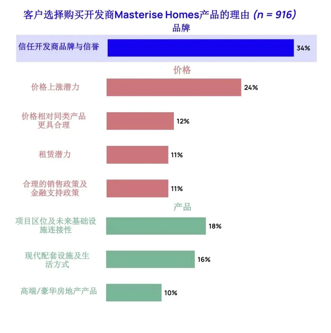 根据市场研究与客户洞察中心- One Mount Group对近1000名客户的调研结果,开发商信誉被认为是客户决定购买 Masterise Homes 产品的首要因素。此外,价格上涨潜力、项目区位及未来基础设施连接性同样是影响客户决策的重要因素。
