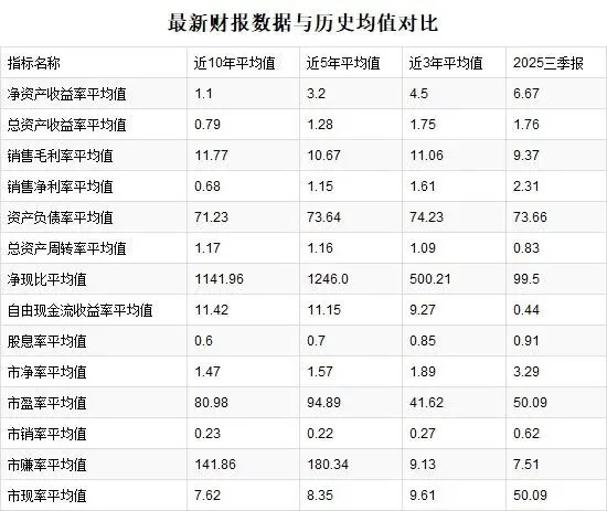 为了便于横向对比,所有指标均已进行归一化处理。一句话概括: 企业盈利能力持续改善,现金流趋稳,负债水平保持高位,估值较历史均值明显抬升,整体呈现盈利增强但估值偏高的态势。