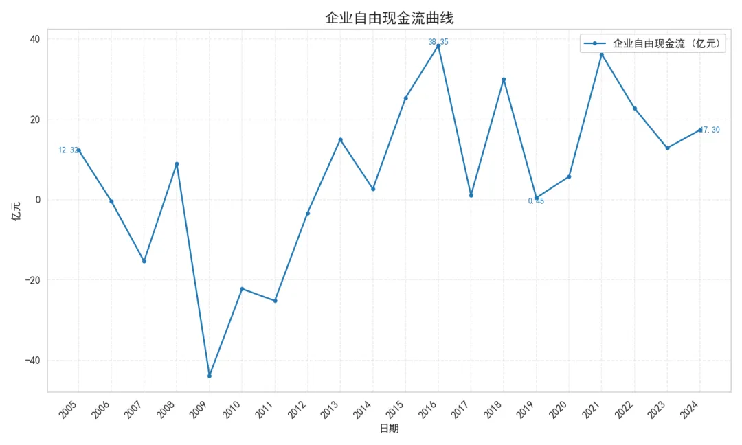 成长潜力: 营业收入十年复合增长约4.5%,2024年达1036.91亿元。研发投入持续加码,2022年研发费用23.03亿元,占营收2.49%。自由现金流收益率2021年达23.67%,2024年回落至3.88%,成长动能有所波动。