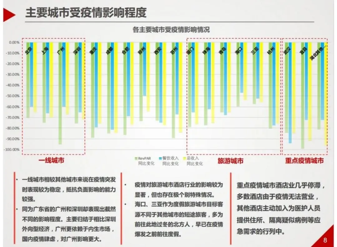 2020年春节期间,突如其来的疫情给全国酒店行业带来了前所未有的冲击。优尼华盛基于中国饭店协会统计及自身调研,涵盖28个省5109家酒店、111364个房间的数据分析,全面呈现了疫情下酒店行业的现状、困境与应对方向。