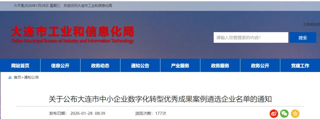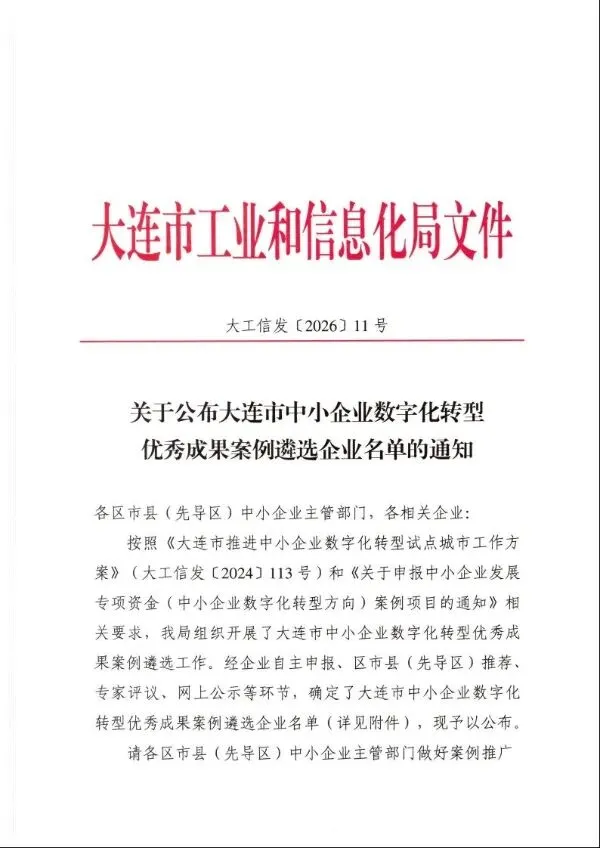 【大连市】关于公布大连市中小企业数字化转型优秀成果案例遴选名单的通知