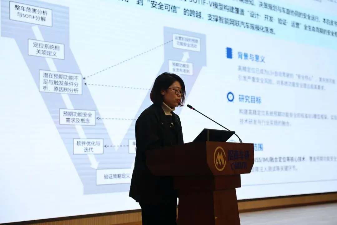 会上,中国汽车工程研究院周丽玲作为代表正式发布《高精定位系统预期功能安全V模型白皮书》。