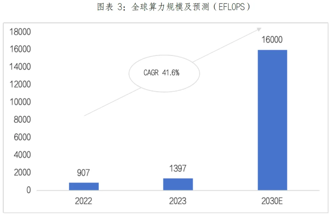 当前全球算力产业高速增长,2023年全球算力总规模达1397EFLOPS,同比增长54%,预计2030年将超过16ZFlops。智能算力占总算力规模比重超30%,成为关键增长引擎,其爆发主要源于生成式AI推动。截至2024年底,全球通算规模达628EFLOPS (FP32),同比增长14.0%;智算规模达5693EFLOPS (FP16),同比增长64.7%;超算规模为20EFLOPS (FP64),智算需求呈现强劲增长态势。