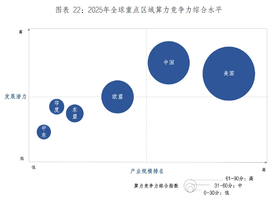 亚太地区成为全球算力增长重要引擎,中国通过“东数西算”战略推进算力枢纽体系建设,国产算力集群能力提升;日本专注机器人等特定领域算力应用;韩国聚焦高端芯片设计与制造。