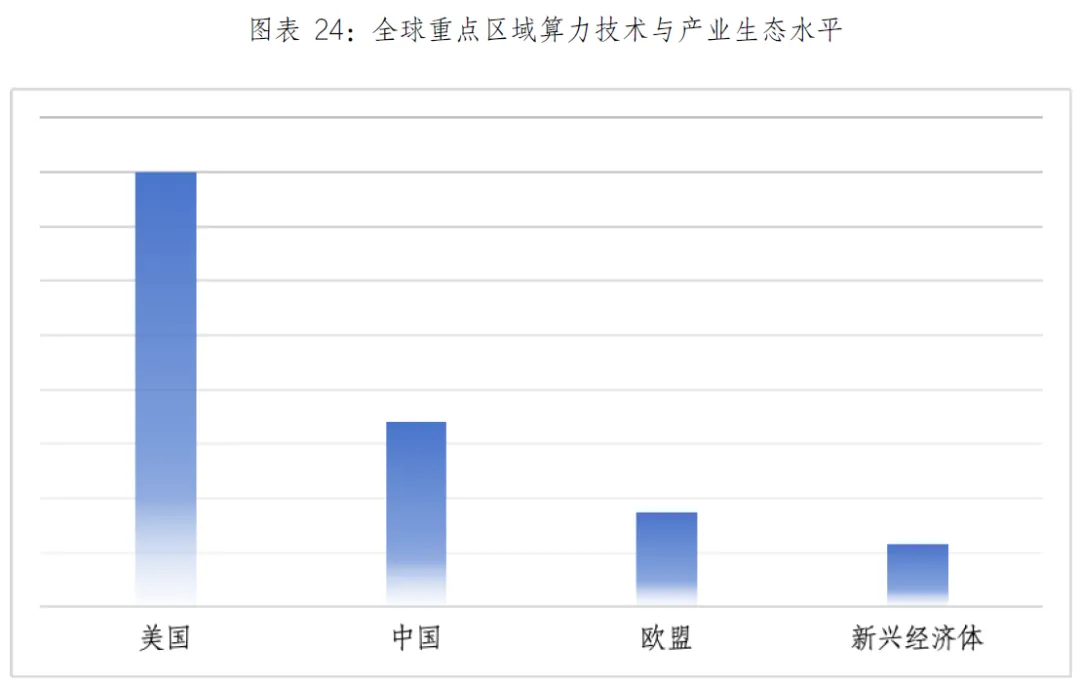 北美地区依托芯片设计、制造等核心技术积累与硅谷产业生态,构建完整产业链,巩固全球算力核心枢纽地位。美国在芯片研发、AI基础软件、技术人才等领域优势显著,形成完整算力产业体系,与其他地区拉开差距。