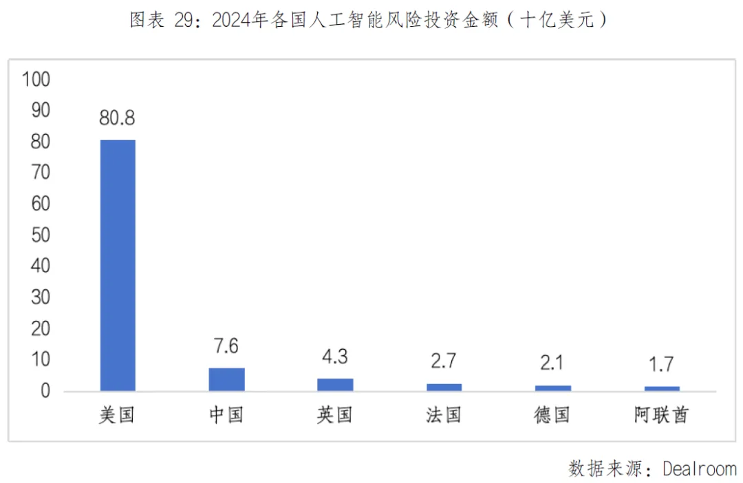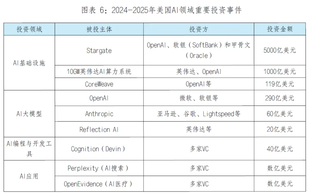 科技巨头资本支出大幅增长,2025年微软、谷歌、亚马逊、Meta四家公司资本支出总和突破3000亿美元,主要用于AI数据中心和算力建设。同时,科技巨头在风险投资领域活动频繁,2024年上半年风险投资额达248亿美元,投资重心为基础技术、基础设施,其次是应用层及运营支持层。2024年美国人工智能领域风险投资金额占全球总额的74%,远超其他国家,IPO、并购等交易活跃,头部项目估值高企。