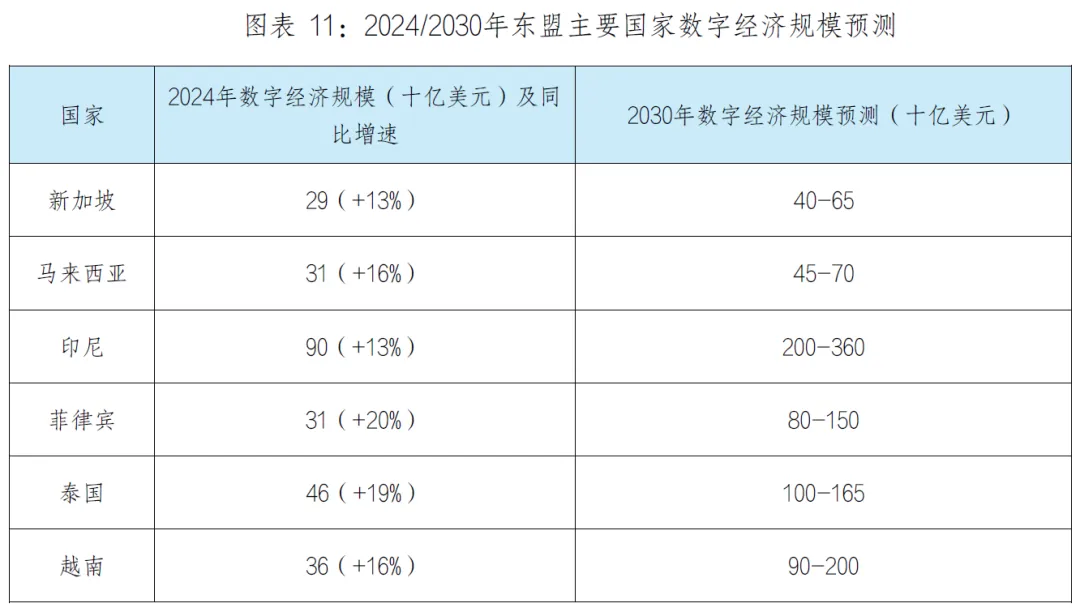 新兴势力加速破局,中东地区沙特设立650亿美元专项AI基金,阿联酋任命全球首位人工智能部长;印度启动“半导体使命”计划,班加罗尔集聚超500家芯片设计企业;东南亚地区借力数字经济增长红利,吸引头部科技企业布局。东盟算力产业链相对薄弱,尚未形成具有全球竞争力的本土芯片设计或先进制造能力,硬件基础严重依赖进口。