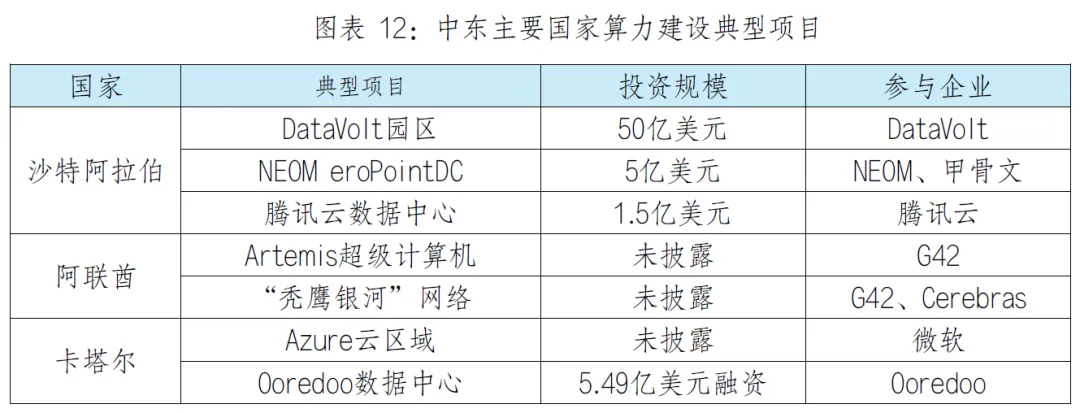 中东地区以国家战略为引领,在“后石油经济”转型共识下,将数字化与人工智能确立为核心发展方向。沙特“愿景2030”计划推动重大算力项目落地,NEOM科技子公司启动ZeroPointDC超大规模数据中心建设,DataVolt宣布投资50亿美元建设“净零排放”AI数据中心园区;阿联酋任命全球首位人工智能部长,推出Falcon大模型。