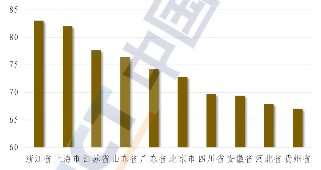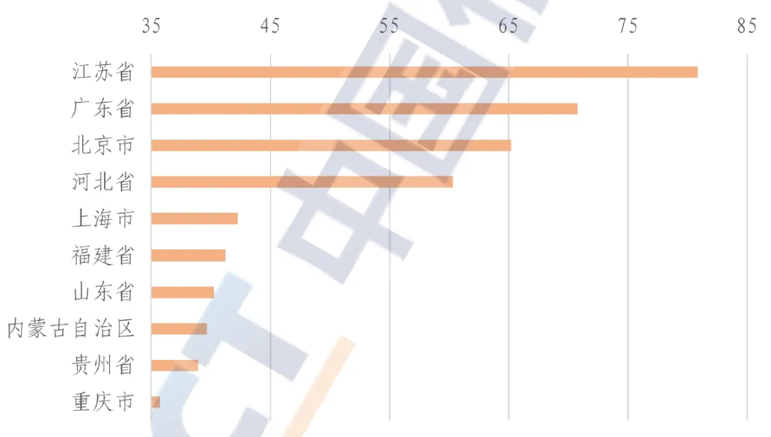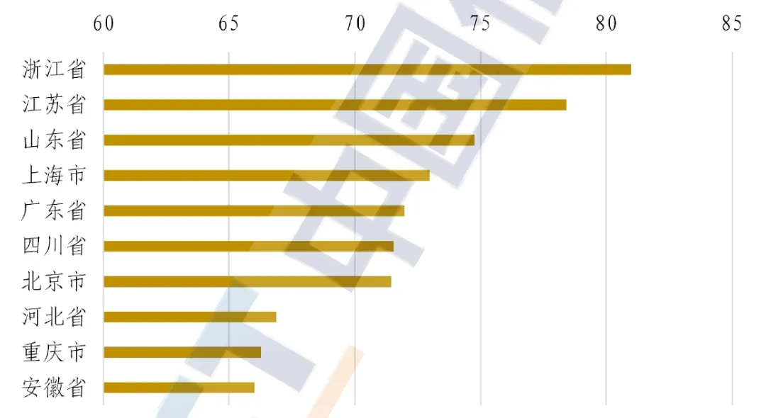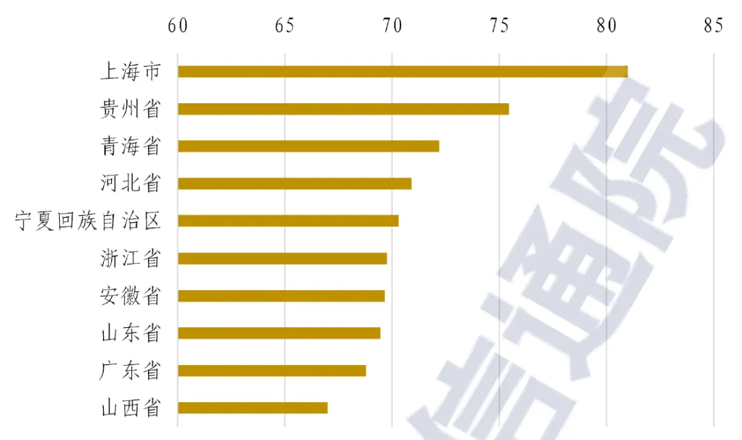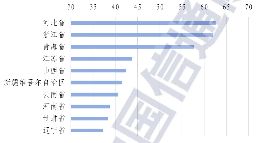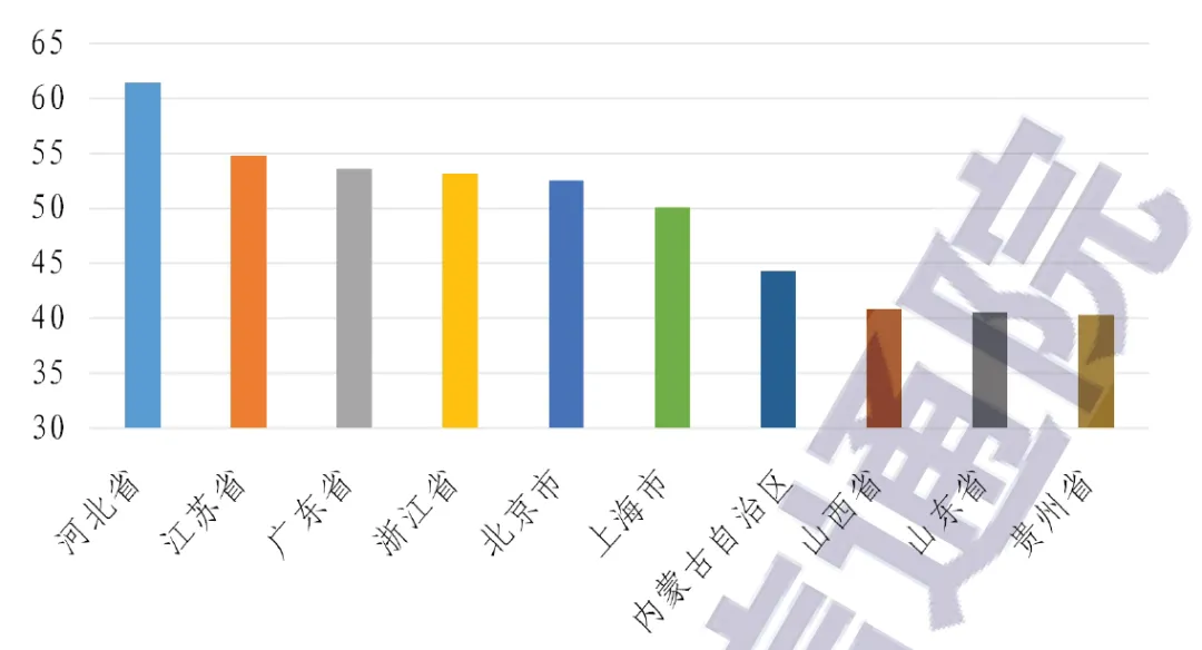 我国省级行政区环境分指数Top10为青海省、内蒙古自治区、河北省、江苏省、浙江省、新疆维吾尔自治区、甘肃省、山西省、山东省、宁夏回族自治区。环境分指数Top10中,东西部省份各占五成,在资源环境和市场环境方面呈现不同优势特征:西部地区在政策支持、气候条件与绿色能源供应等方面具备优势;东部沿海地区则在基础设施、人才集聚和产业生态建设方面表现突出。