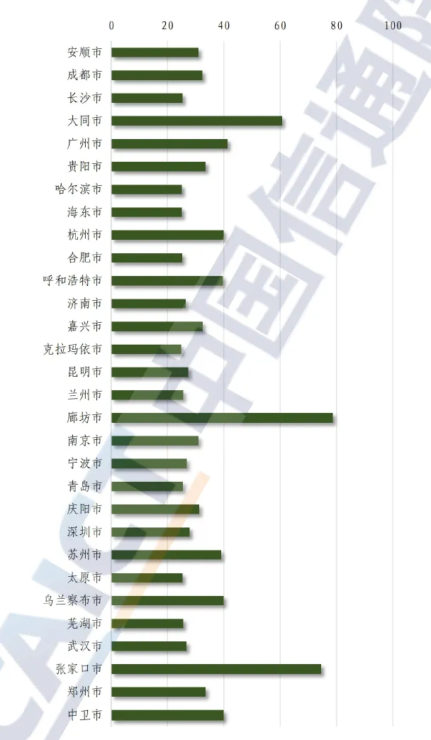 城市算力分指数综合评估全国拥有算力中心的302个地级行政区(包含274个地级市、28个自治州,不含直辖市)的算力水平,Top30包含廊坊市、张家口市、大同市、广州市、杭州市、中卫市、乌兰察布市、呼和浩特市、苏州市、贵阳市等。