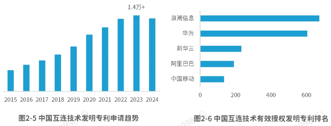 二是互连技术,年度申请量突破1.4万件,浪潮信息、华为占据国内授权专利前两位,华为CloudEngine 16800系列交换机专利技术专为大规模GPU集群设计,支撑算力集群高效协同;