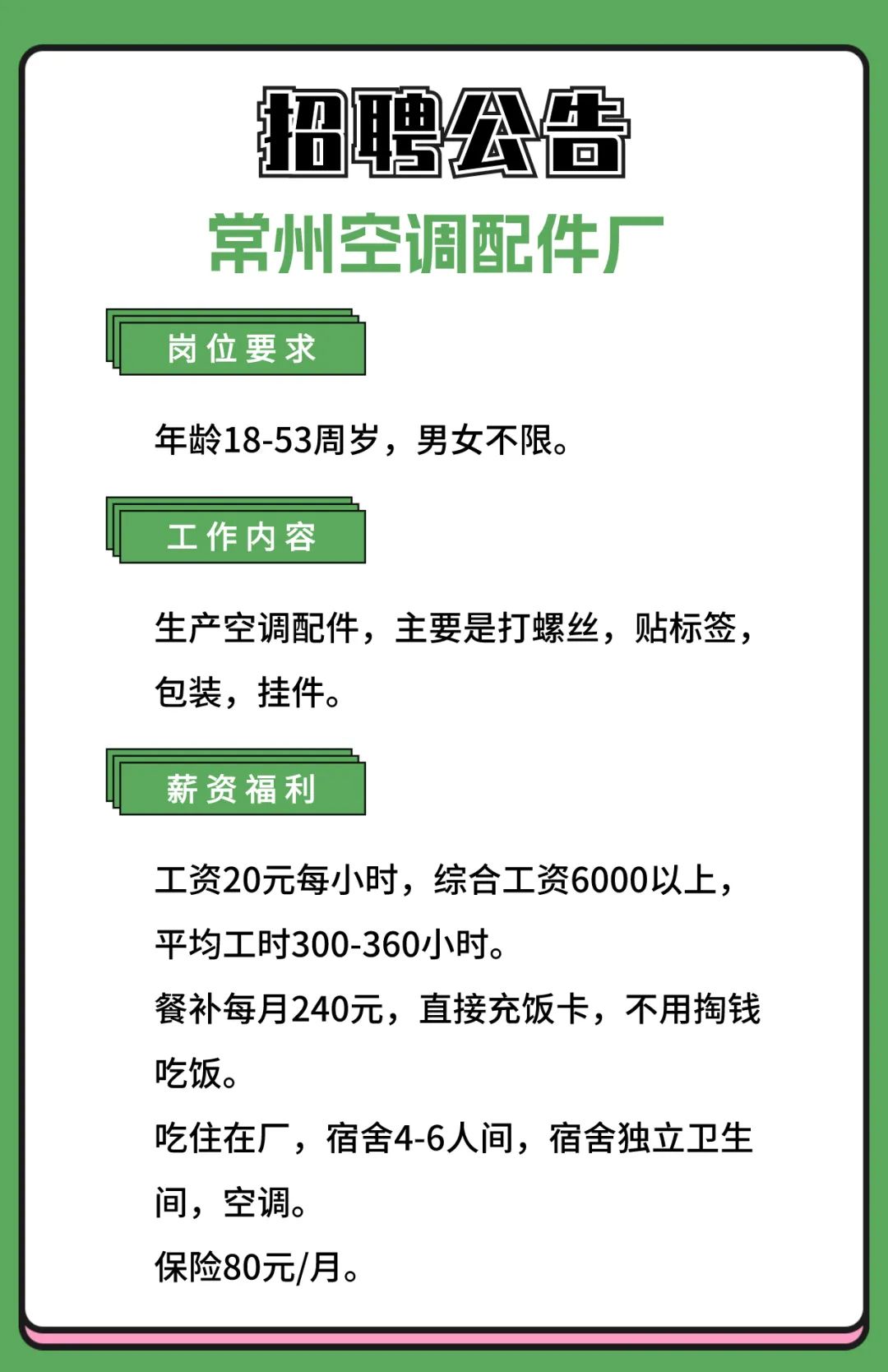 【岗位招聘】常州空调配件厂