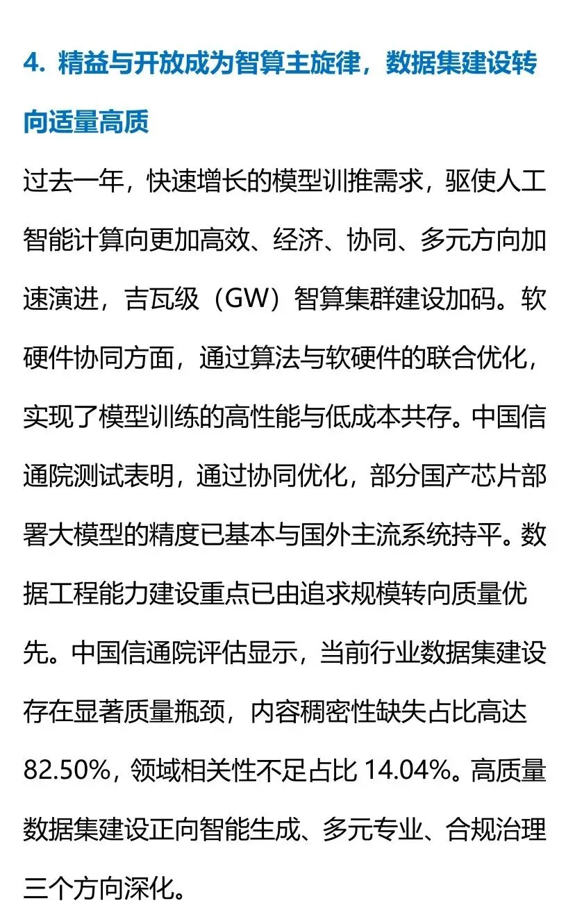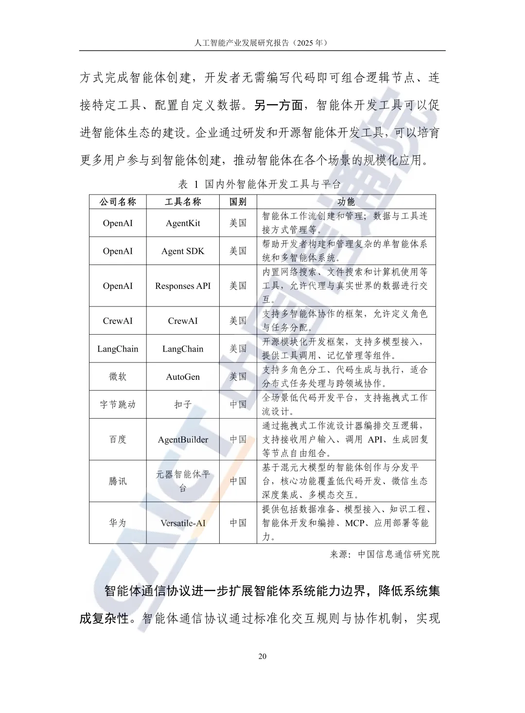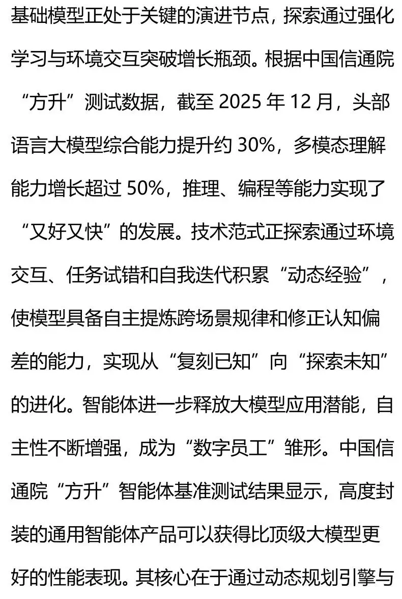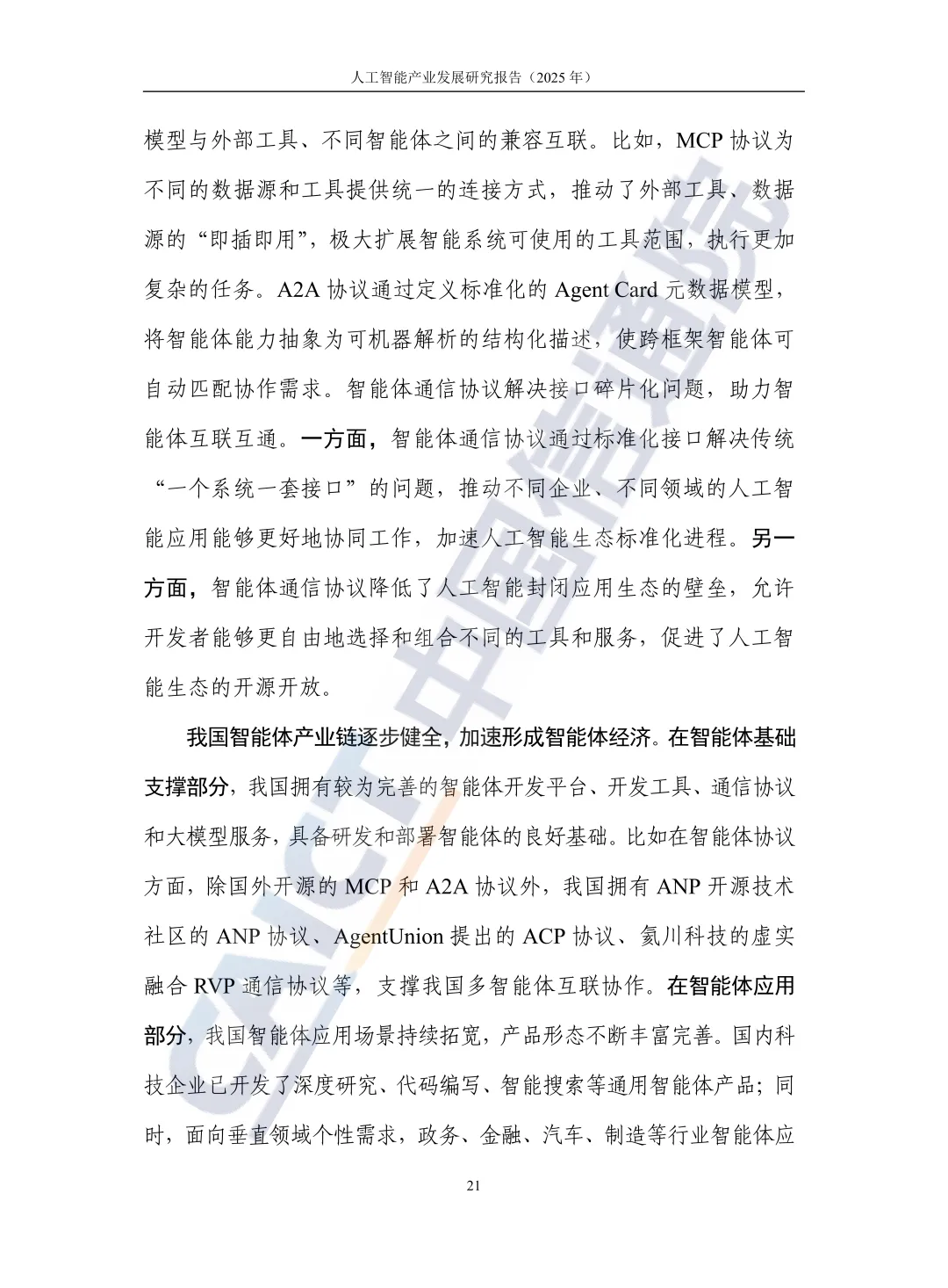 近日,中国信息通信研究院(简称“中国信通院”)在深入调研和量化评测的基础上,发布了《人工智能产业发展研究报告(2025年)》。
